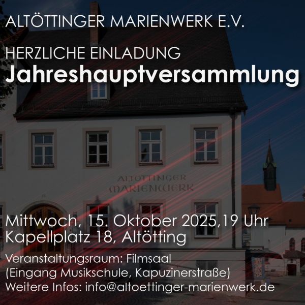 Errichtet am 24. März, am Vorabend des Festes Mariä Verkündigung des Jahres 1946, ist das Altöttinger Marienwerk eine Gemeinschaft, die der Verehrung unserer Muttergottes dient und die Wallfahrt zu ihrem Heiligtum nach Altötting fördert.